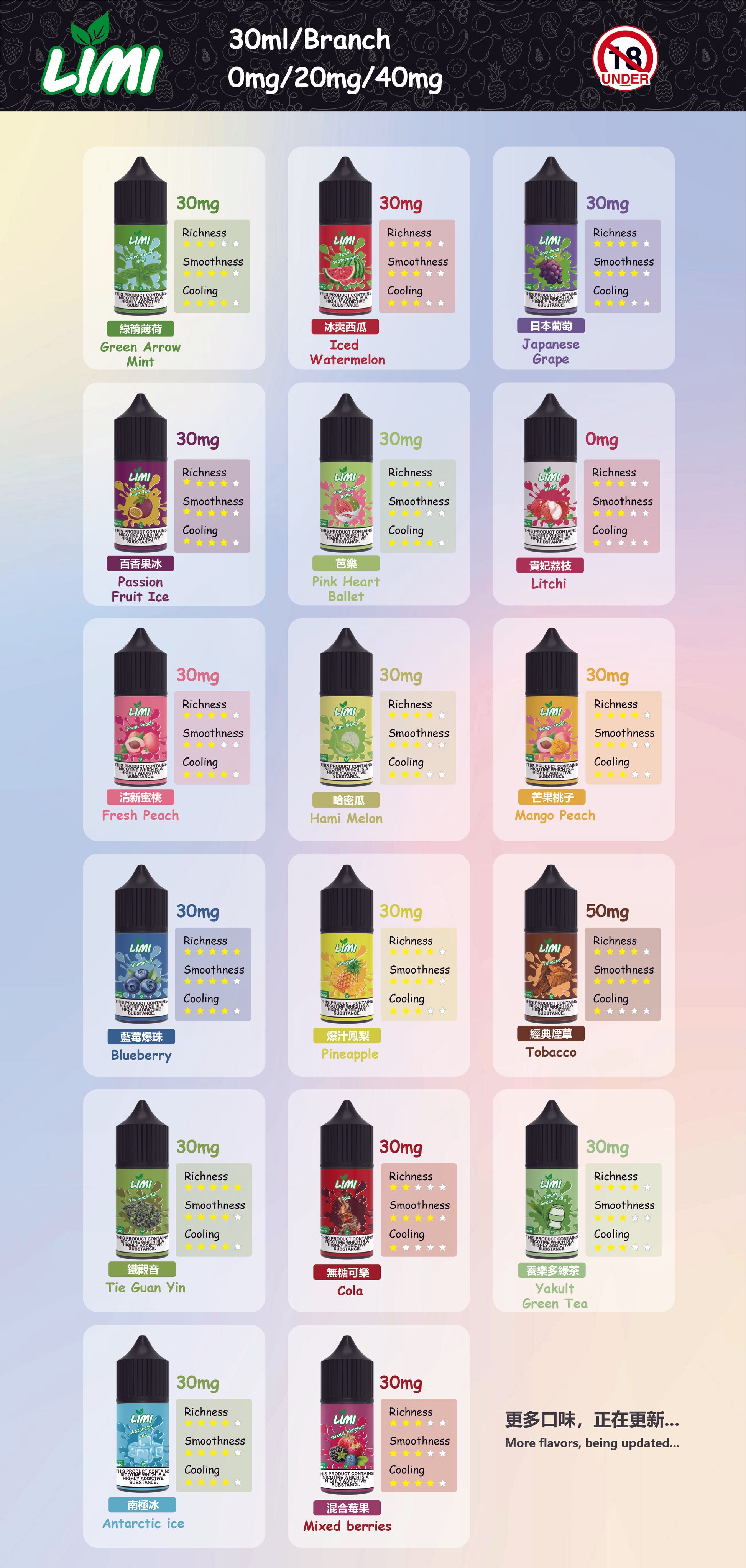 LIMI煙油,16種口味,0丁無涼荔枝,0丁無糖可樂,SHEGN