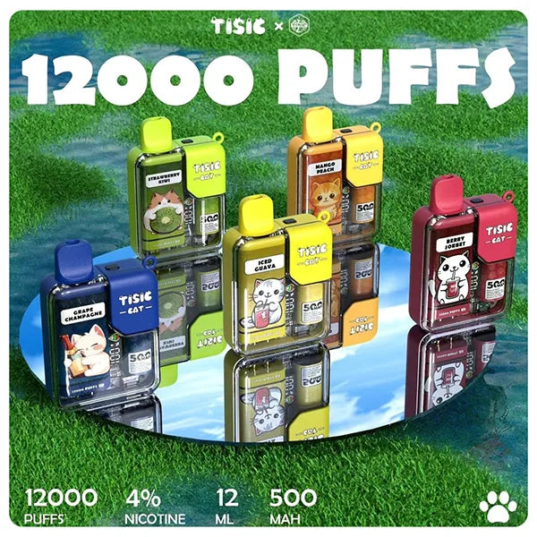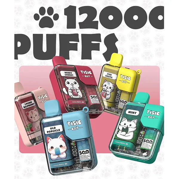 TISIC一次性電子煙輕巧便攜,操作簡單,即拆即用。內含多種靚爆口味,電量與煙油容量充足,提供持久順滑的吸煙體驗,非常適合新手或追求方便的用戶。每支TISIC貓咪拋棄式電子菸擁有12000口的超大容量,能夠滿足長時間的吸煙需求。